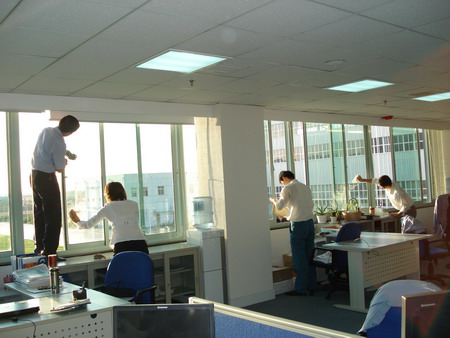 業(yè)務(wù)技術(shù)黨支部共32人參加勞動(dòng),支部書(shū)記梁文運(yùn)與支委們首先對(duì)負(fù)責(zé)清理的二樓、四樓場(chǎng)所及會(huì)議室的窗戶和地面進(jìn)行了詳細(xì)分工,使大家在有限的時(shí)間內(nèi)有條不紊的進(jìn)行。特別是二樓只有13人參加勞動(dòng),衛(wèi)生清理工作量比較大,但大家都沒(méi)有任何怨言。在勞動(dòng)中,鄭素紅、房凝、徐寶紅、牛愛(ài)香四位女同志連續(xù)工作一個(gè)半小時(shí)打掃了二樓的所有辦公室和會(huì)議室的地面。李正民副總和李同華副總率先帶頭擦起了窗戶,在擦完窗戶后大家又把所有的窗臺(tái)和地面的衛(wèi)生死角清理了一遍。