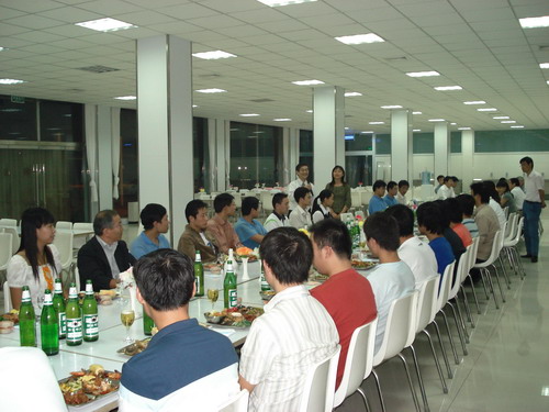 晚宴在輕快的音樂聲中舉行,總經(jīng)理孫龍平因公務(wù)無法前來,專門打電話表達(dá)了對員工的節(jié)日問候。公司董事長井上先生、常務(wù)副總鈴木先生先后致辭,表達(dá)了對員工節(jié)日的祝賀,同時談到了八月十五這一天,在日本也有全家人賞月的傳統(tǒng),故鄉(xiāng)的明月是所有游子魂牽夢繞的情。自助式晚宴進(jìn)行得自由而輕松,員工之間頻頻舉杯,共敘友誼,并無多愁善感;人力資源部姜部長帶頭向員工一一祝酒,對員工的鼓勵溢于言表,整個餐廳觥籌交錯,其樂融融。