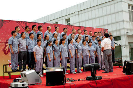 首先公司黨員的大合唱“團(tuán)結(jié)就是力量”、“歌唱祖國”,歌聲雄壯有力、振奮昂揚(yáng),展現(xiàn)了廣大黨員努力進(jìn)取、勇挑重?fù)?dān)的精神風(fēng)貌,激發(fā)了全場觀眾的愛國豪情。