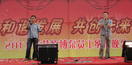 舞蹈《開門紅》寄托著荏原博泵員工對公司發(fā)展前景的美好期盼,展示了公司女職工的風(fēng)采。20多名復(fù)員軍人用一首《咱當(dāng)兵的人》抒發(fā)了他們保家衛(wèi)國、貢獻(xiàn)企業(yè)的豪情與壯志;研發(fā)部、技術(shù)部員工帶來的歌曲《跳起來》,展示了年輕人的青春與活力;質(zhì)量保證部員工在部長岳東海帶領(lǐng)下,演唱了歌曲《相親相愛一家人》,演繹著荏原博泵大家庭的親情、友情。友情樂隊(duì)帶來的動感十足的歌曲,更是將晚會的氣氛烘托到高潮。