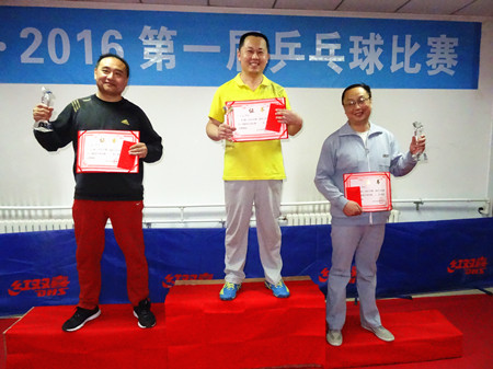 經(jīng)過緊張、激烈的角逐,獲得男子團體比賽的冠軍隊是:機加工二隊;亞軍:質(zhì)量采購隊;季軍:管理隊。獲得男子單打前六名的隊員是:冠軍:李金勇;亞軍:張鑫;季軍:劉增忠;第四名:丁業(yè)旋;第五名:趙汝慶;第六名:聶紅兵。
